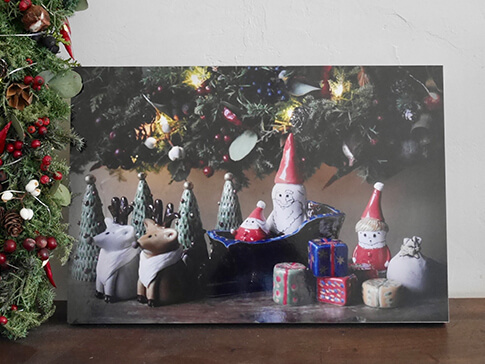 monogramさんで開催させてもらう個展のテーマのクリスマスちび人形を撮影したもので作らせてもらいました。